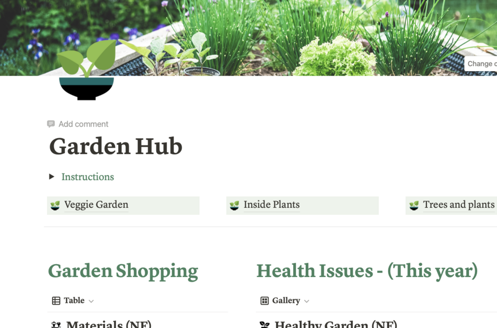 Garden Hub - Track your Veggie garden, indoor plants and your outdoor trees. Nine interconnected databases that allow you to shop for goods, track health issues, manage plots, plantings & harvest. Store resources, set tasks, manage projects, keep a budget and more.