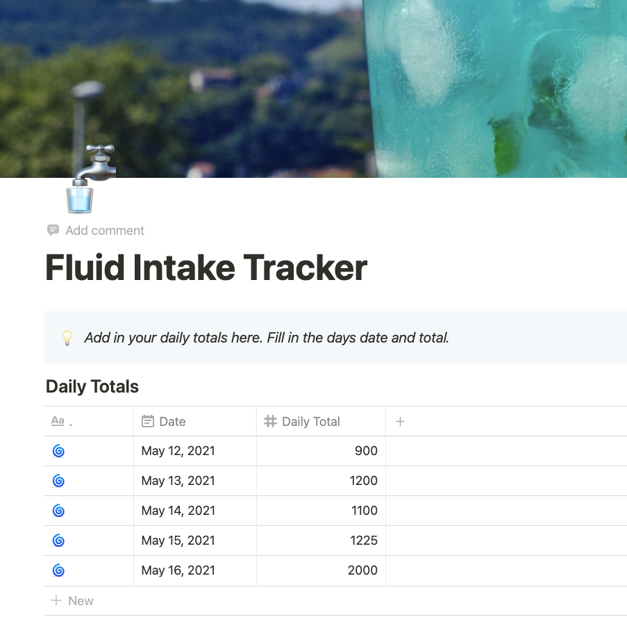 >Welcome to the Fluid Tracker. This template is a simple way to track each 24hr period and keep your daily totals together totals. Great for when you want to track all your fluid intake then increase or decrease it.